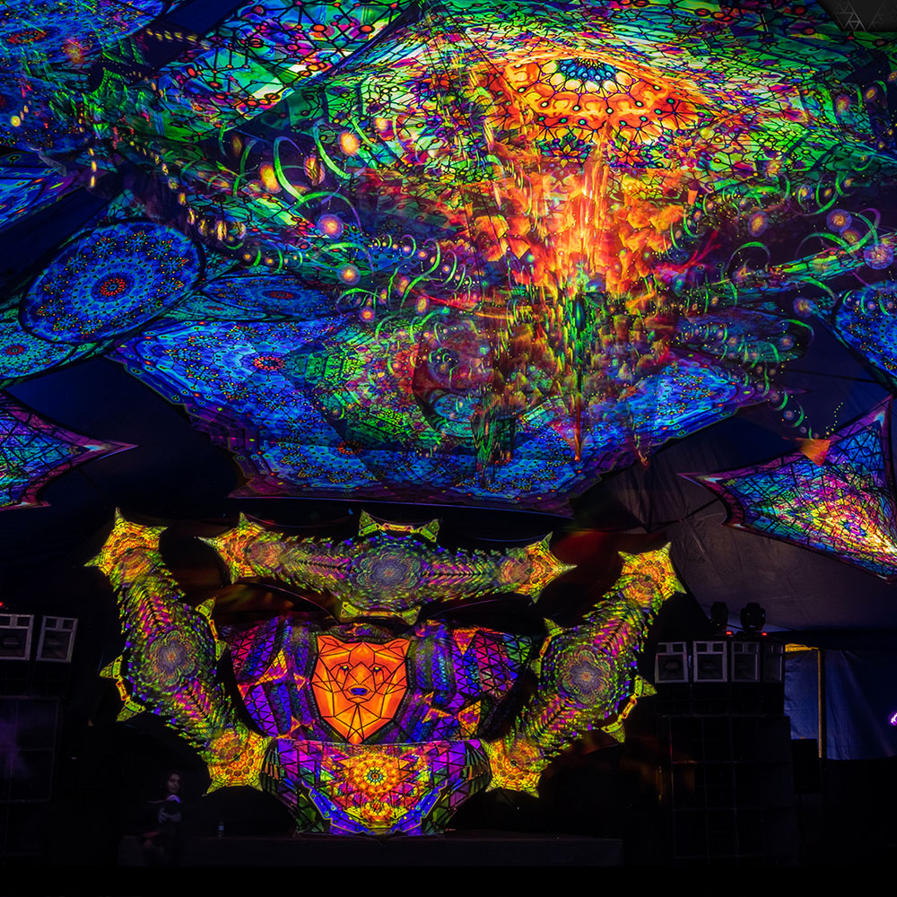EDM-Festival Dekoration mit Spandex und Mesh-Elementen